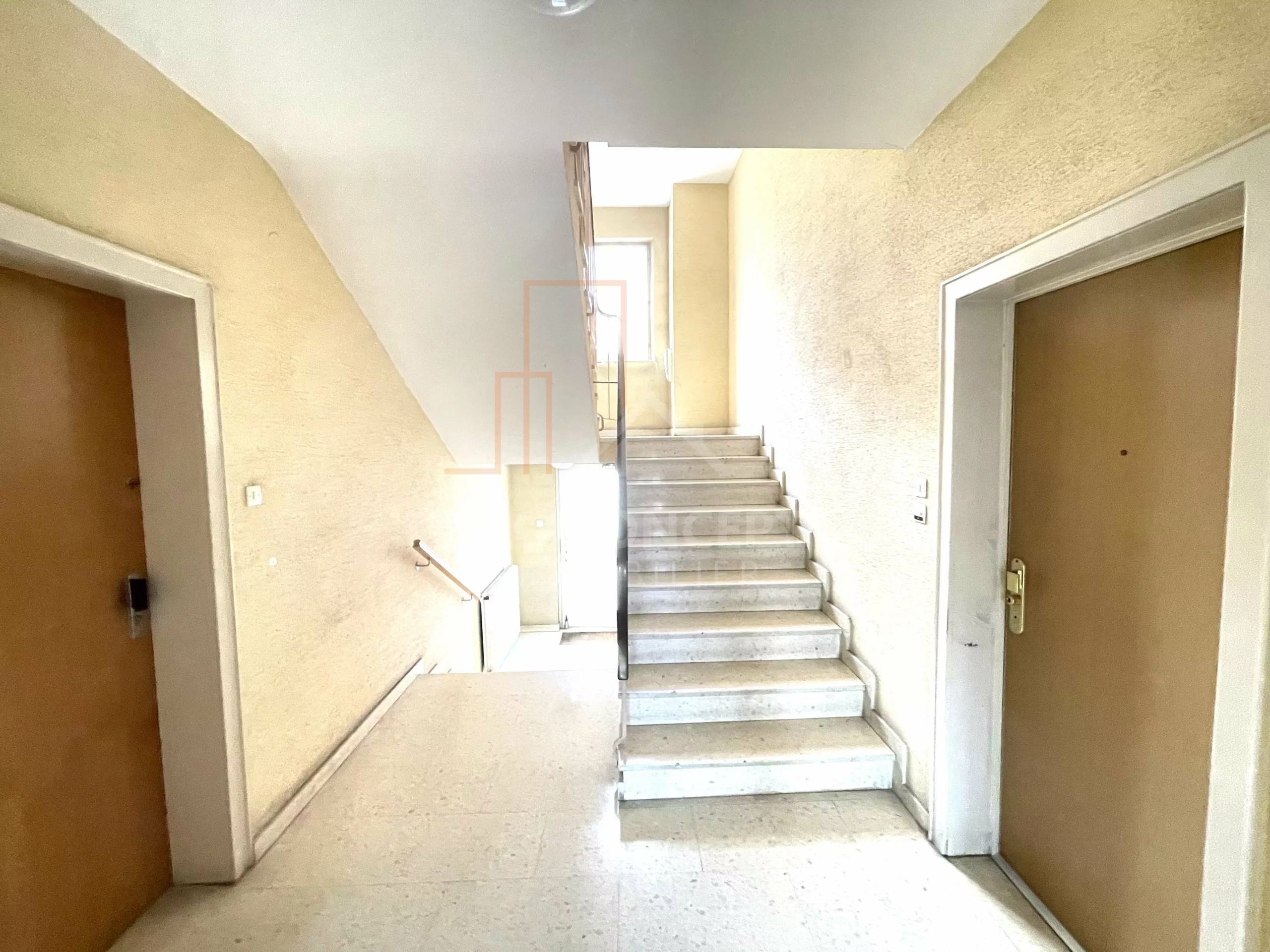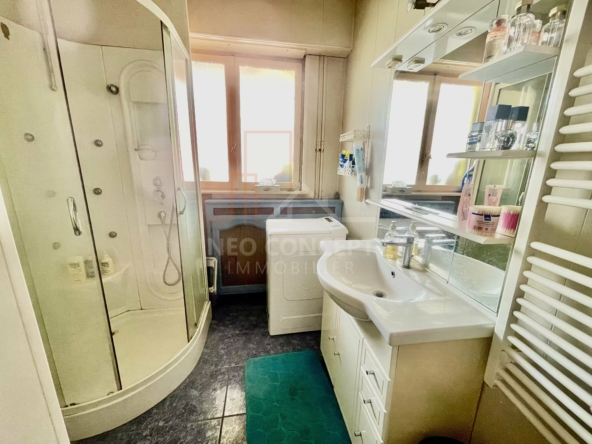 Il se compose d’une entrée, d’une cuisine séparée avec une loggia, d’un salon séjour d’environ 24 m² orienté Sud, d’une salle d’eau, d’un WC séparé, d’un débarras et de deux chambres spacieuses d’environ 14 et 16 m².