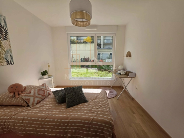 Découvrez ce superbe appartement de 83,71 m² situé à Strasbourg, offrant un confort moderne et des prestations haut de gamme. Composé de trois chambres spacieuses et d’un séjour lumineux ouvert sur une grande terrasse, ce bien bénéficie d’une vue agréable sur un jardin privatif. Le salon, élégant et fonctionnel, garantit une ambiance chaleureuse grâce à ses grandes baies vitrées en aluminium à vitrage renforcé qui assurent isolation et luminosité.