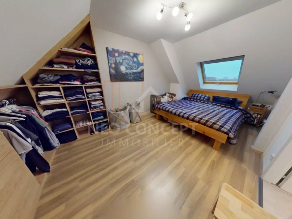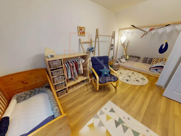 Le bien sera composé au premier niveau d’une entrée avec placard sur mesure, de wc séparés, d’une première chambre de 15m2 et d’une pièce de vie de 41 m2 avec cuisine ouverte équipée et aménagée donnant accès à la terrasse de 15 m2 avec store, prise et lumière.