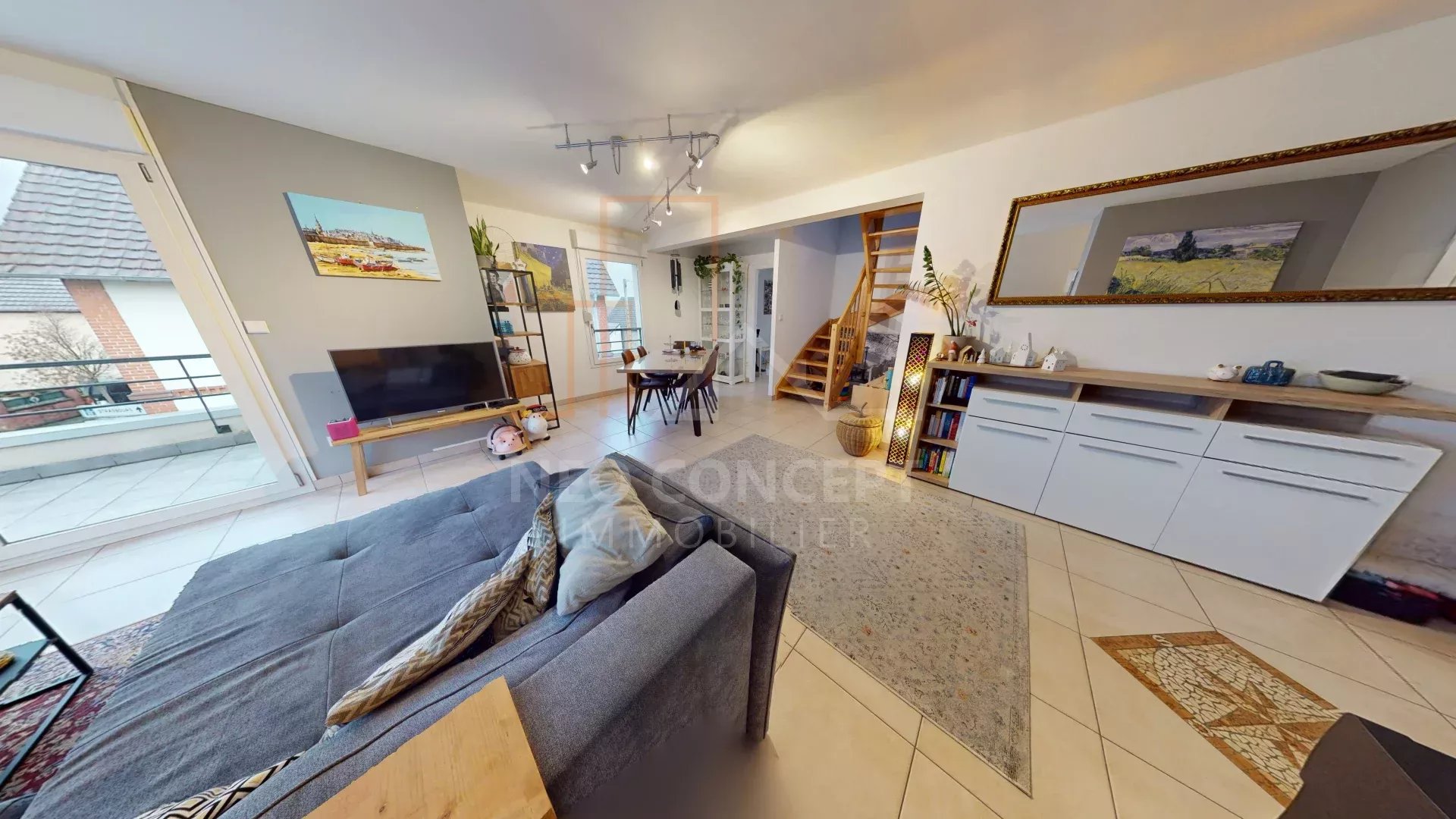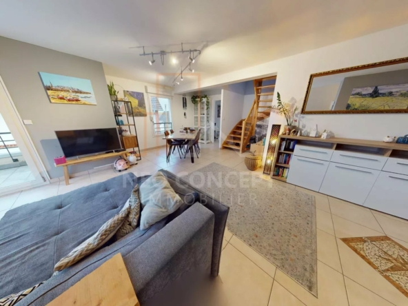 Venez visiter ce beau duplex d’environ 92,55 m2 loi carrez et 120m2 au sol situé au 2ème et dernier étage dans une copropriété de 2009 et proche de toutes commodités.