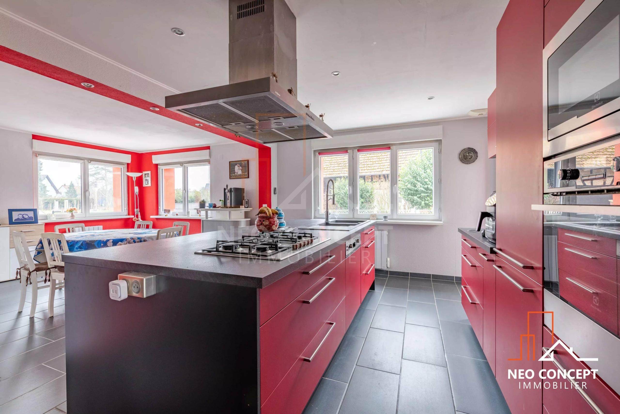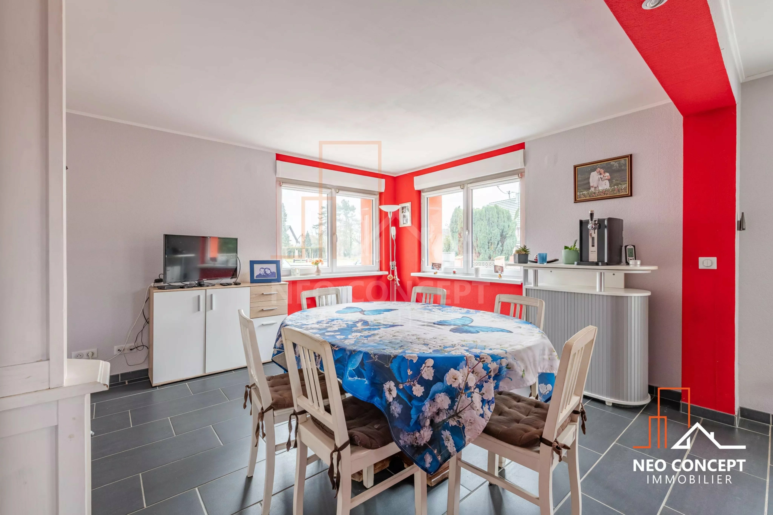 Située à Neuhaeusel, charmant village de la bande rhénane, la maison bénéficie d’un emplacement privilégié à seulement 5 minutes de la frontière allemande et de l’accès à l’A35, tout en offrant un cadre de vie calme et agréable.