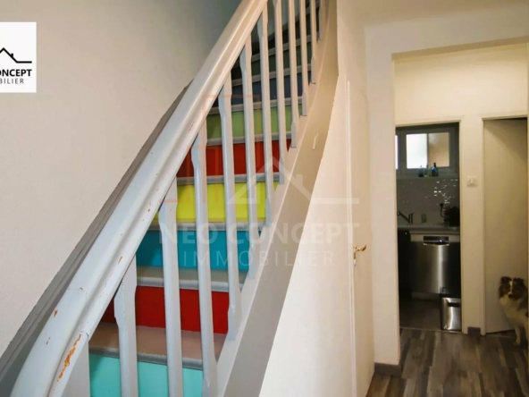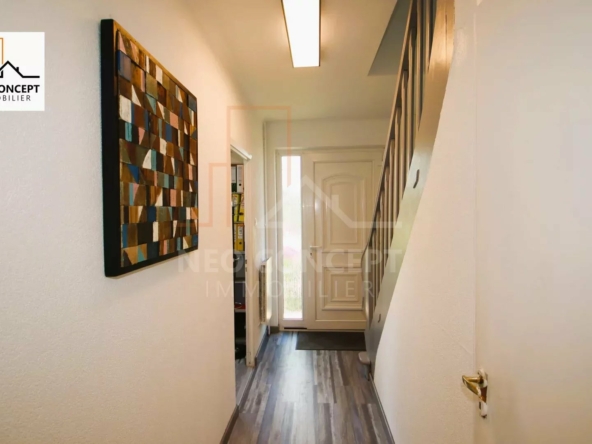A BISCHWILLER, venez visiter cette charmante maison accolée 4 pièces d’environ 77.56 m² habitables avec terrasse couverte, garage et sous-sol. Année de construction 1973, sur un terrain d’environ 3 ares 26 centiares.