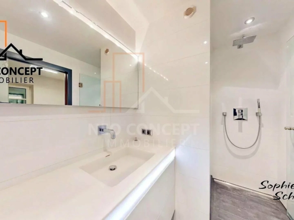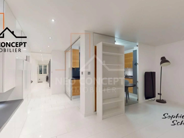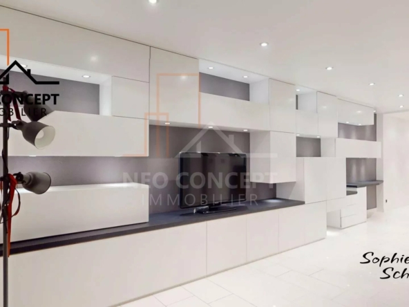 Cet appartement vous offre un grand nombre de rangements sur mesures, du mobilier haut de gamme qui a été pensé pour optimiser l’espace.