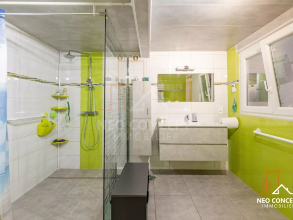 Vous aurez deux entrées, puis dans l’ordre : un salon, une salle à manger, une cuisine, une salle d’eau et deux toilettes complètent le niveau.