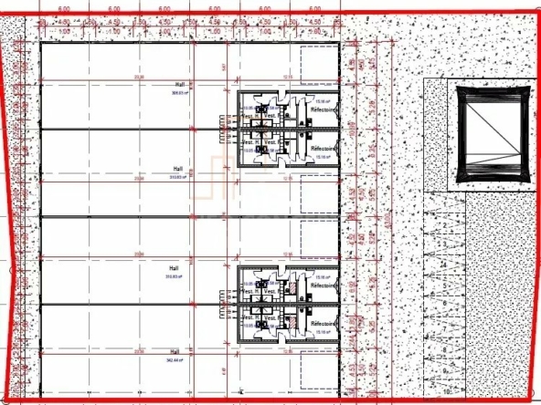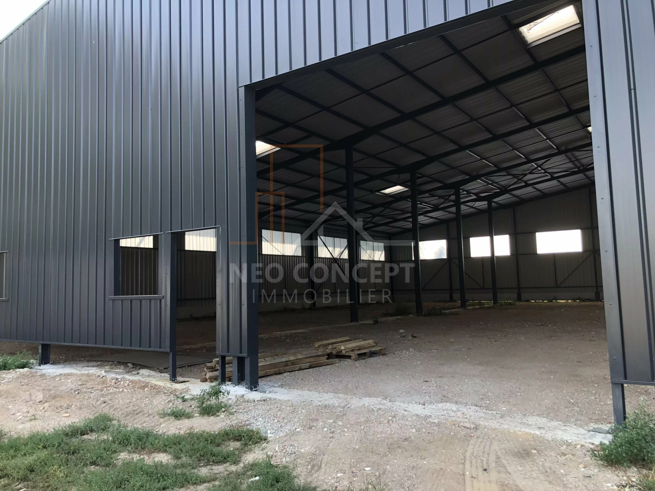 D’environ 305 m² avec sol béton ciré et 32 m² de bureau et locaux sanitaires, ouverture par une grande porte sectionnelle L 454 H 451