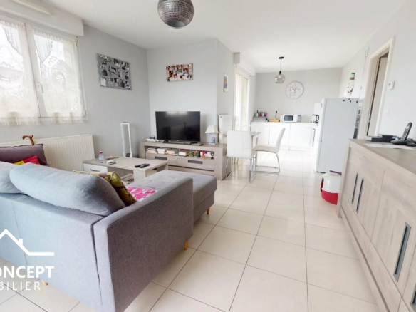 – Deux chambres (15.10 m² + 20.45 m²) + Séjour/Salle à manger avec cuisine ouverte + Salle de bains + WC séparés.