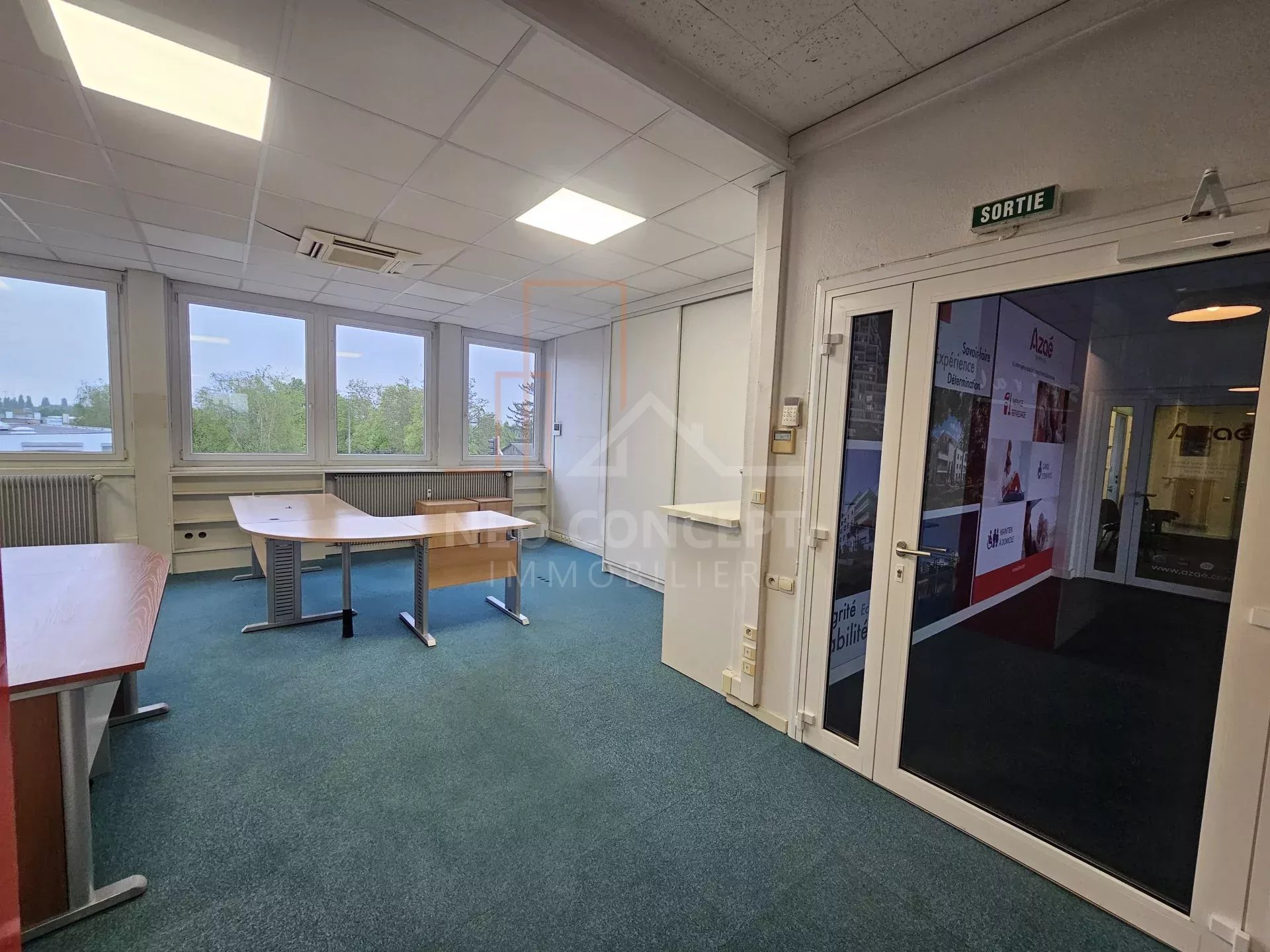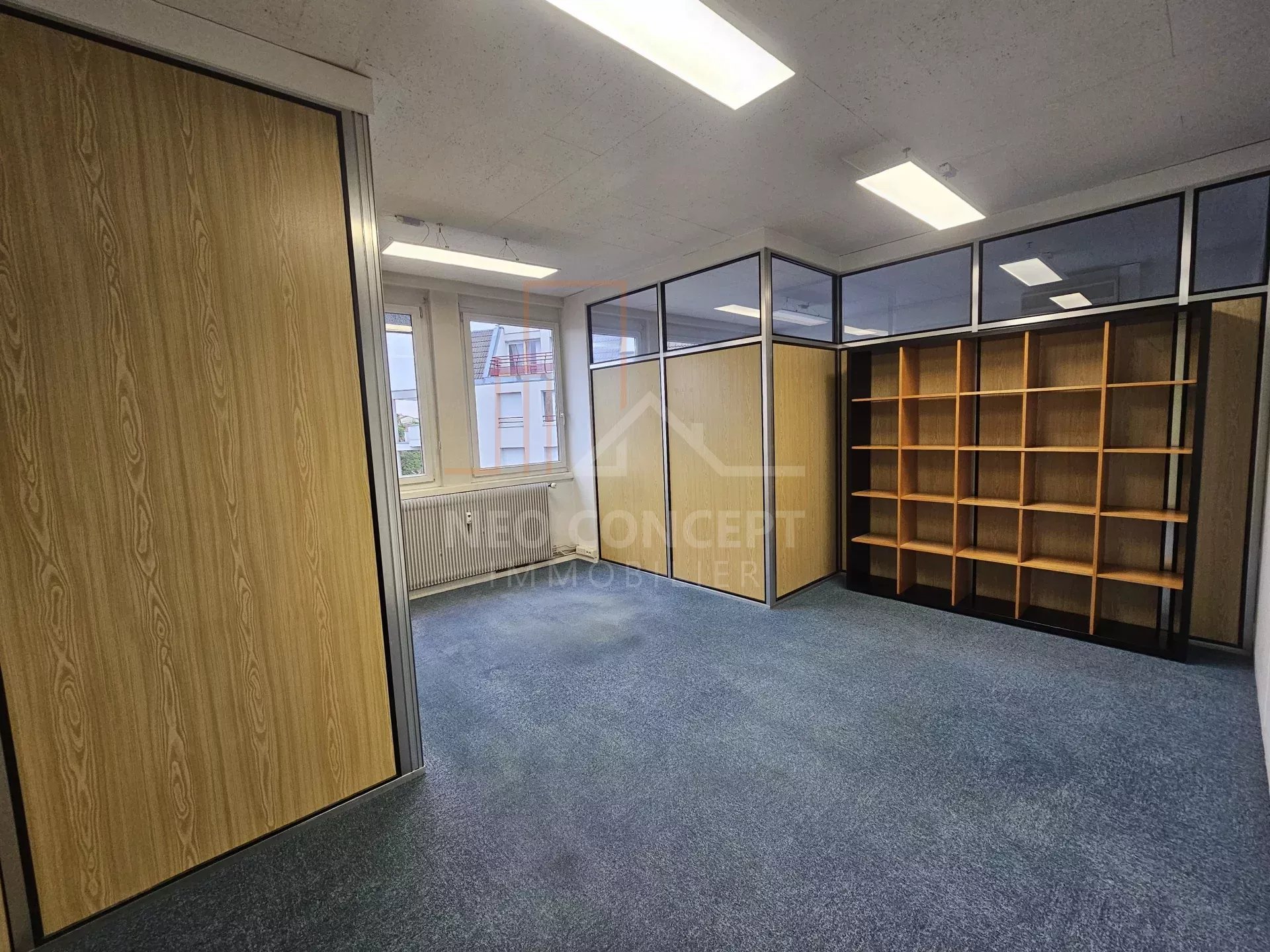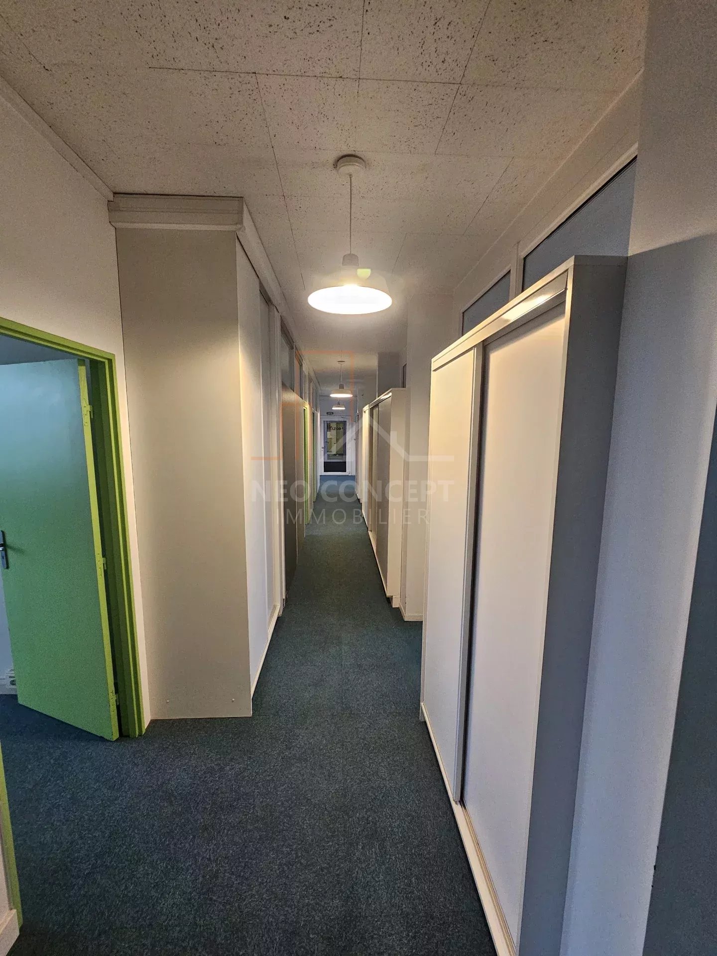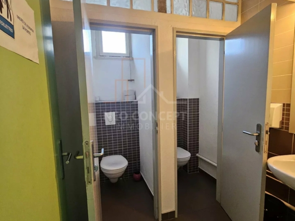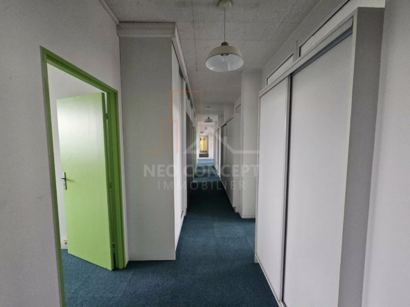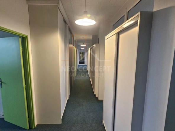 Le local bénéficie d’un grand hall d’accueil, de huit bureaux lumineux et cloisonnés, d’un espace cuisine aménagé et équipé, d’un local technique avec baie de brassage et un espace toilette homme et femme. Le tout est desservi par un couloir avec plusieurs armoires de rangement.