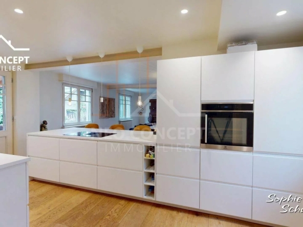 Cette maison rénovée avec goût à partir de 2022 a beaucoup de cachet et de beaux volumes (193 m² au sol), elle est dotée de climatisation réversible à la cuisine et au séjour ainsi que dans chaque chambre. Le chauffage est au gaz de ville, les fenêtres sont en PVC double vitrage. Vous bénéficiez également d’une cave.