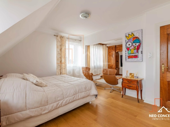 Située dans un environnement résidentiel calme, cette propriété rare sur le secteur se compose d’une spacieuse maison individuelle d’environ 195,7 m² habitables implantée sur 2 parcelles totalisant env. 2 179 m² de terrain (parcelles cadastrales de 735 m² et 1 444 m²).