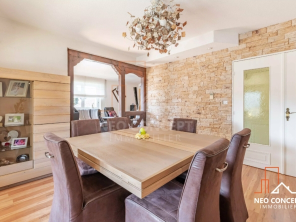 Elle offre de beaux espaces de vie lumineux, une ambiance chaleureuse, trois chambres, ainsi qu’une configuration très fonctionnelle avec un garage en cave, un garage extérieur, et une salle en cave d’environ 20 m² pouvant faire office de chambre supplémentaire, salle de jeux, espace loisirs ou bureau pour télétravail.