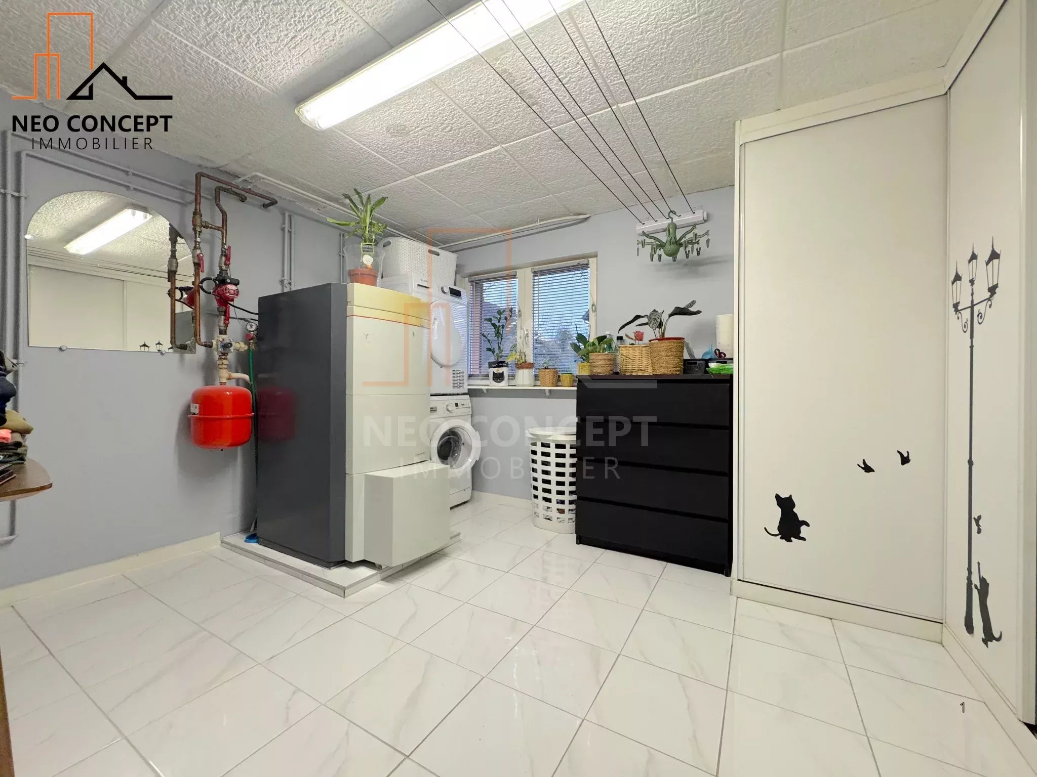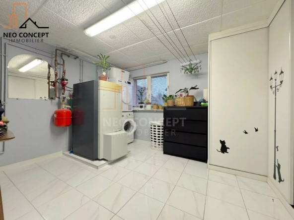 Le bien bénéficie d’un sous-sol total, comprenant un garage double ainsi qu’une partie aménagée avec une buanderie, un bureau et des espaces de rangement.
