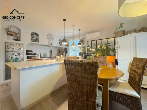 La maison se compose d’un espace de vie lumineux comprenant séjour et cuisine ouverte, formant un ensemble fonctionnel et agréable au quotidien.