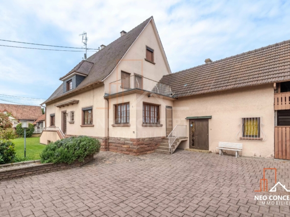 OBERHOFFEN SUR MODER, venez visiter cette grande maison de caractère de type 8 pièces d’environ 200 m² habitables, année de construction 1950 sur environ 5 ares et 98 centiares de terrain dans un cadre villageois.