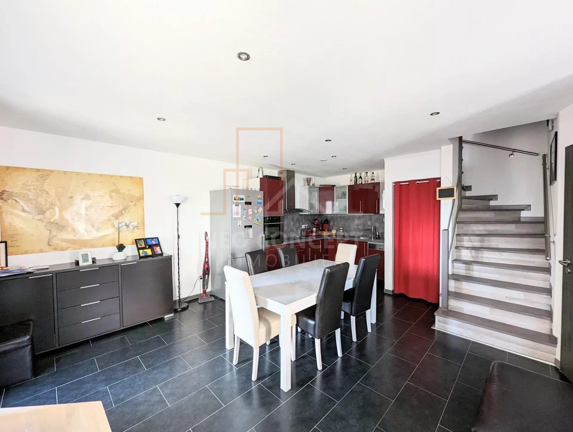 Exclusivité Neo Concept Immo ! Venez visiter cette charmante maison mitoyenne de type 4 pièces, agencée sur 3 niveaux, d’une surface Carrez de 88,15 m² Carrez (99,7 m² au sol), située en seconde ligne de la route de Woerth, au sein d’une petite copropriété composée uniquement de 4 logements accolés construits en 2008 et disposant chacun d’une entrée individuelle.