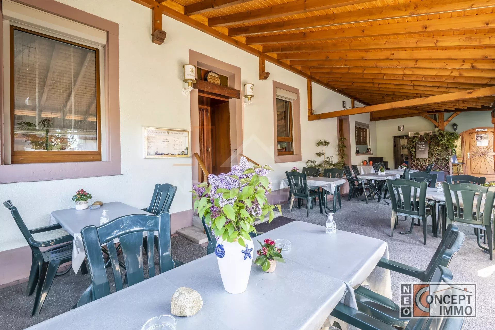 – Terrasse d’environ 80 m2 entièrement couverte datant de 2010. (Environ 40 couverts).