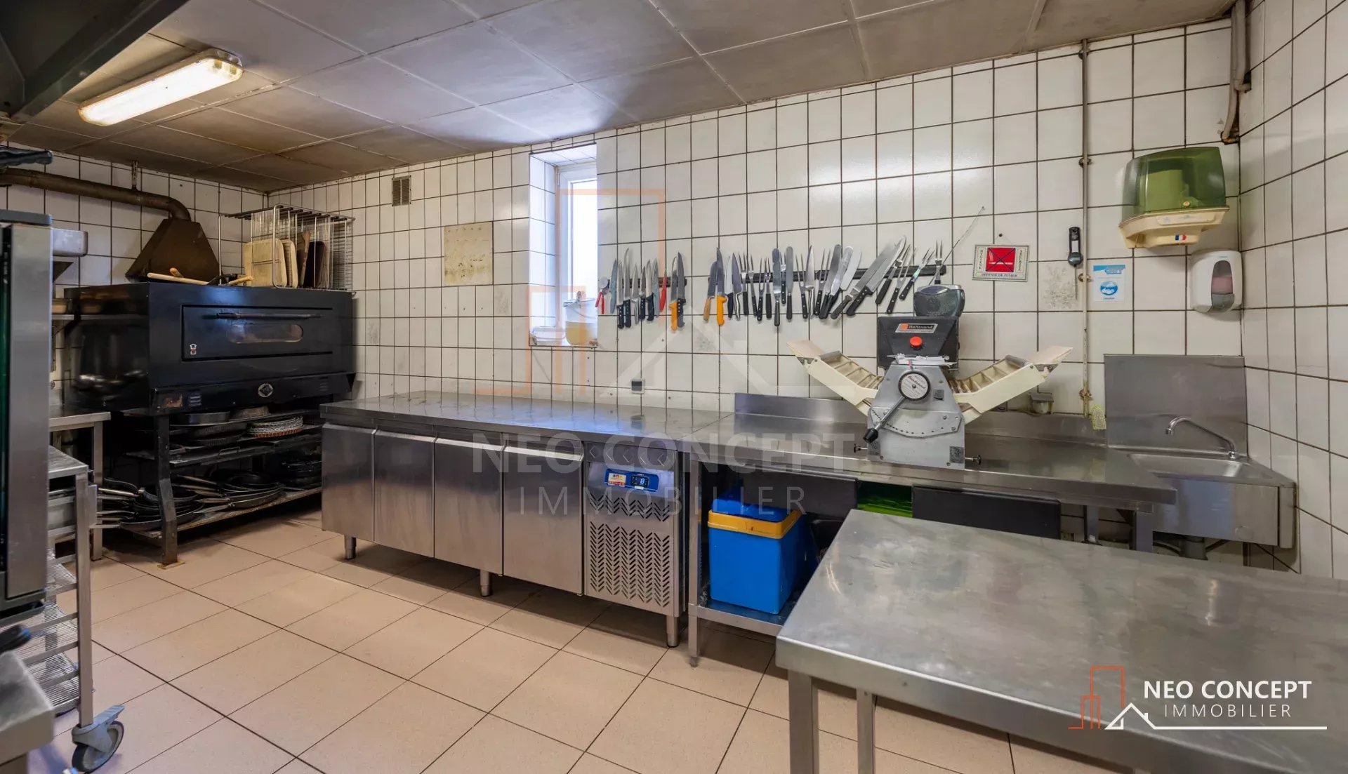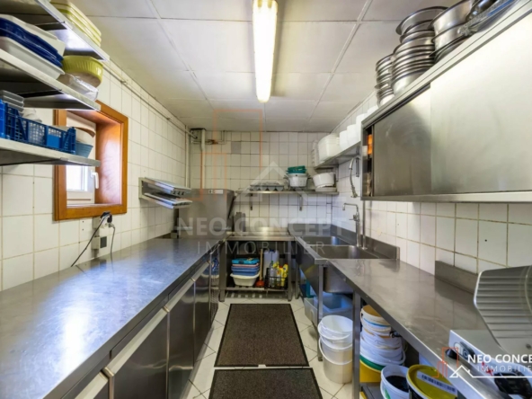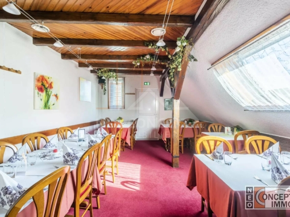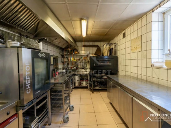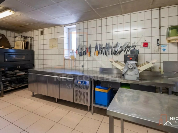 Le bâtiment est composé de deux salles de restauration, une grande cuisine, un garage, un espace chaufferie, plusieurs espaces de stockage, plusieurs toilettes (normes PMR sur l’ensemble des installations) et à cela s’ajoute un grand appartement de 151 m² habitables situé au-dessus du restaurant composé d’un dégagement, d’une salle d’eau, de wc séparés, de 4 chambres et d’un bureau. Au rez-de-chaussée vous retrouverez une cuisine privée ainsi qu’un salon privatif.