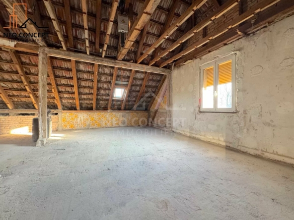 L’intérieur est aujourd’hui à l’état brut, offrant un espace totalement ouvert, prêt à accueillir votre propre vision d’aménagement.