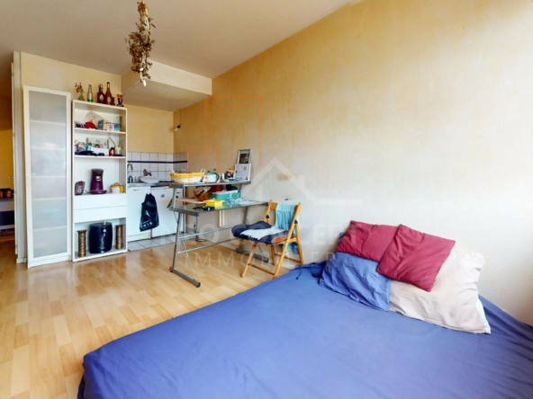 L’appartement est composé d’une entrée avec placard, d’une pièce à vivre avec kitchenette et d’une salle d’eau avec wc.