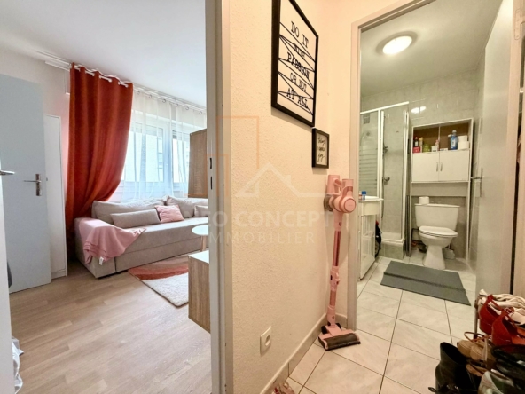 Joli studio de 26 m² vendu loué meublé au sein d’une copropriété bien entretenue rue de Beblenheim dans le quartier du Neudorf.