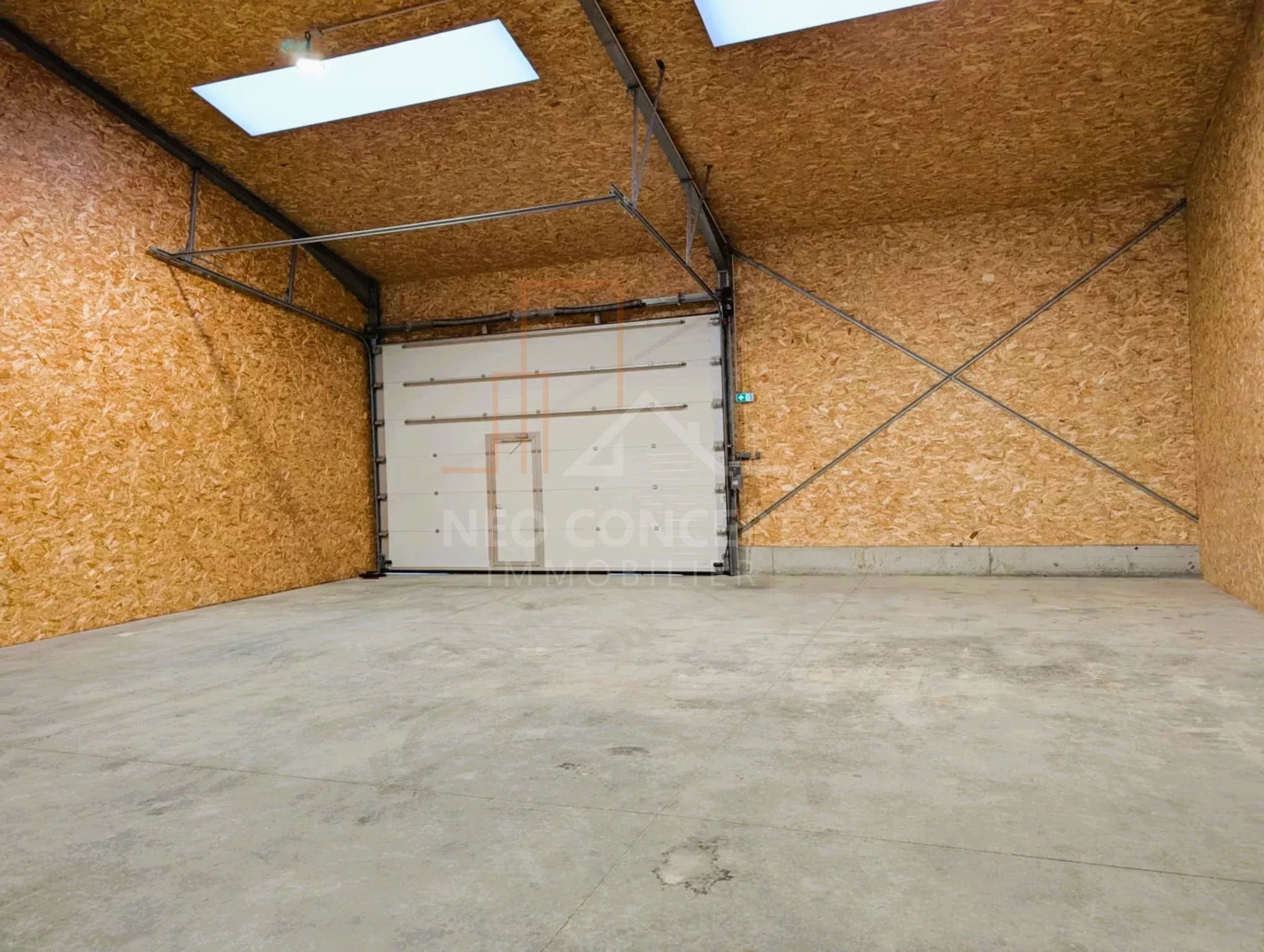 D’environ 200m² avec sol béton ciré porte sectionnelle L 454 H 451